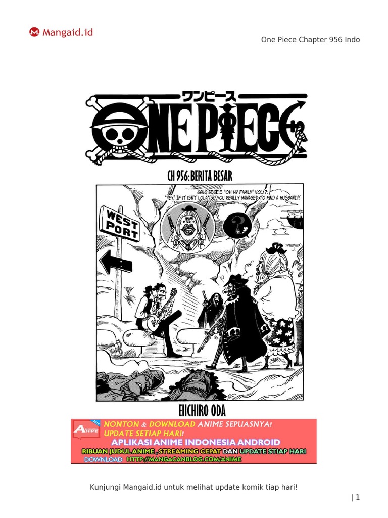 One Piece Chapter 956 Bahasa Indonesia Kalian sedang berada di halaman baca komik One Piece Chapter 956 bahasa Indonesia Jika kalian ingin membaca manga One Piece, pastikan Javascript kalian aktif Untuk koleksi komik seru lainnya di BacaKomik ada di menu Daftar manga « ChapterOne Piece kapitel 956 SWORD kapten XDrakes rapport förklaras Titeln på det senaste kapitlet i One Piece håller fast vid dess innehåll Med titeln "Big News" avslöjade detta kapitel information som skakade One Piecevärlden och fansenOne Piece hoofdstuk 955 eerder deze week uitgebracht in Shonen Jump thru Viz Media De releasedatum is